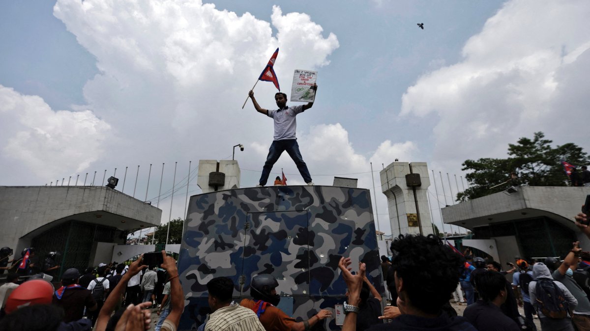 “Stop the ban on social media, stop corruption, not social media,” the crowds chanted, waving the red and blue national flags. Monday’s rally was called the protest of Gen Z, generally referring to people born between 1995 and 2010.
