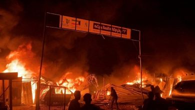 A designated area for displaced people burns after an Israeli strike, Rafah, southern Gaza, Palestine, May 26, 2024. (Reuters Photo…