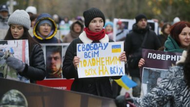 Relatives and friends of Ukrainian prisoners of war (POW) take part at a rally in Odesa, Ukraine, Nov. 26, 2022.…