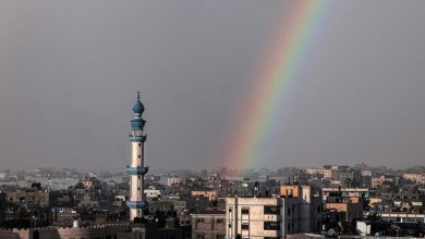 A rainbow appears over Rafah, amid the ongoing conflict between Israel and Palestine, Gaza Strip, Palestine, Feb. 15, 2024. (AFP…
