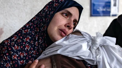 The mother of the twins holds their bodies Credit: Haitham Imad/EPA-EFE/Shutterstock A pair of baby twins who were born during…