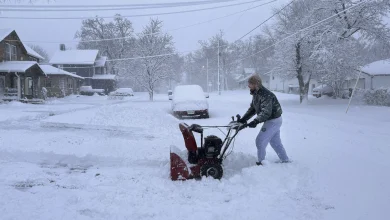 Matt Stilwell of Des Moines, Iowa, uses a snowblower to clear his driveway and sidewalk at him home Tuesday,…