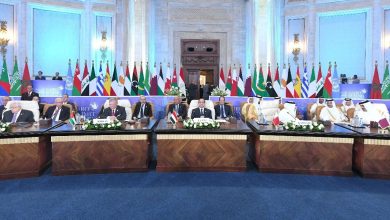 Egyptian President Abdel Fattah el-Sissi and other leaders attend the Cairo international summit for peace in the Middle East in…