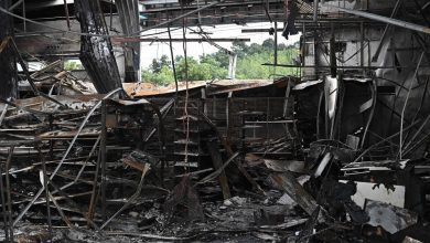 Damage from a fire caused by Cambodian artillery at a convenience store and gas station, Sisaket, Thailand, July 25, 2025.…