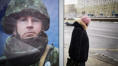 A woman walks past a poster promoting contract army service in western Moscow, Russia, April 9, 2025. (AFP Photo) Russian…