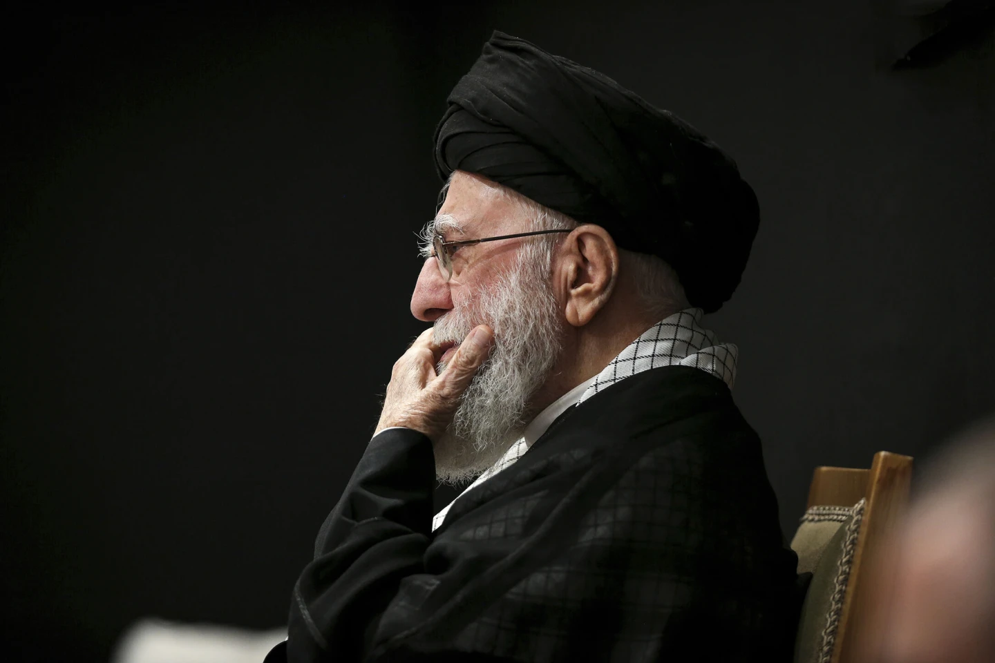 In this photo provided by the Office of the Iranian Supreme Leader, Supreme Leader Ayatollah Ali Khamenei attends a mourning ceremony commemorating the death anniversary of the Prophet Muhammad’s grandson, Hussein, in Tehran, Iran, on Saturday, July 6, 2025. (Office of the Iranian Supreme Leader via AP)